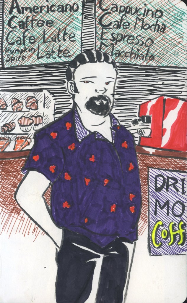 Picture a second-story window, and standing before it on the inside is a young man, no older than twenty. He’s not particularly tall, and he’s bulky, but not unattractively so. He wears his blond hair down to his chin, and his clothes, usually denim, were covered in paint. He sticks his head outside and yells out, “I thought I told you to leave Angelita outta this!”